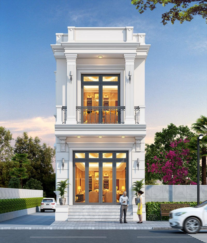 Xu hướng thiết kế nhà hiện đại hướng đến lối kiến trúc mở, khoáng đạt không gian sống gần gũi giao hòa với thiên nhiên. Chính vì vậy, cần chú trọng đến việc tạo độ thông thoáng lý tưởng cho nhà chia lô (kiểu nhà ống). Cụ thể, mẫu nhà phố 2 tầng hiện đại dưới đây bố trí thiết kế cửa sổ và hành lang ban công hợp lý giúp lấy gió lấy sáng tự nhiên hiệu quả nhất.