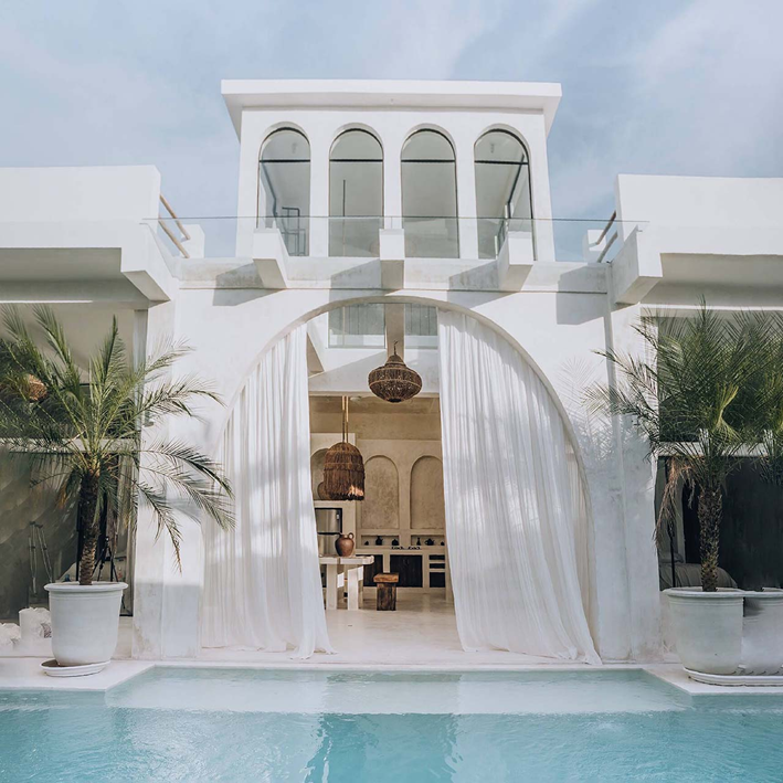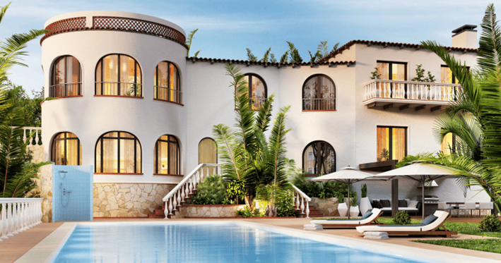 Phong cách này thường tạo ra sự liên kết mạnh mẽ giữa không gian trong nhà và ngoài trời, với cửa sổ lớn, ban công rộng, hoặc hiên nhà có mái vòm.
