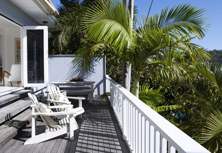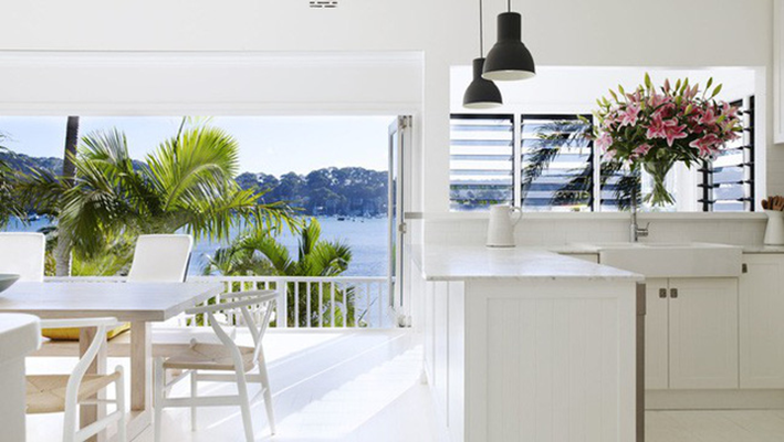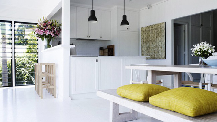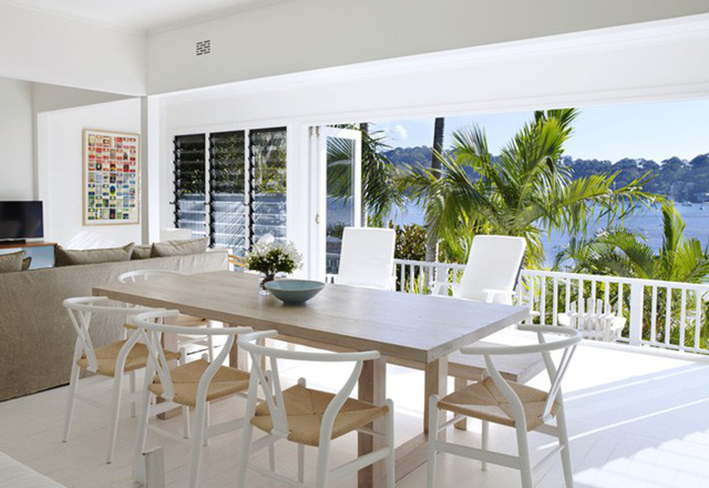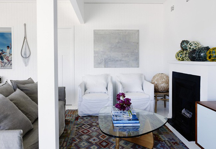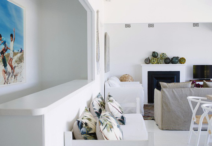 Việc sử dụng bảng màu trắng chủ đạo, kết hợp điểm nhấn với những tone màu nhiệt đới khiến cho căn nhà mang vẻ đẹp tự nhiên, không quá nặng nề bởi các trang trí nội thất mà đáp ứng được chức năng nghỉ dưỡng ven biển.