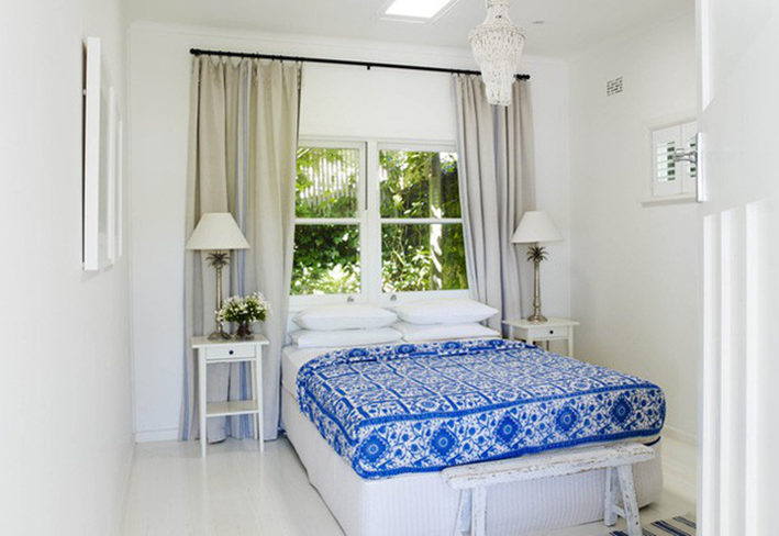 Để tăng thêm sự tiện nghi, hoàn hảo cho không gian sống. Kiến trúc sư đã bố trí các khu vực sinh hoạt riêng tư đầy nghệ thuật. Ở đây, Kiến trúc sư đã kết hợp phong cách hiện đại cùng các điểm nhấn mang ấn tượng Vintage khiến cho các phòng ngủ trở nên mềm mại, ấm cúng hơn. Thích hợp với không khí lãng mạn ở biển, cùng với đó là họa tiết lạ mắt được đặt trên chiếc ga trải giường họa tiết màu xanh dương đậm là nổi bật hơn cả.